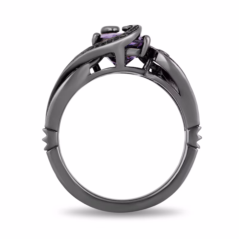 Enchanted Disney Villains Ursula Oval Amethyst and 1/4 CT. T.W. Black Diamond Ring in Sterling Silver