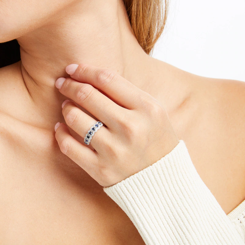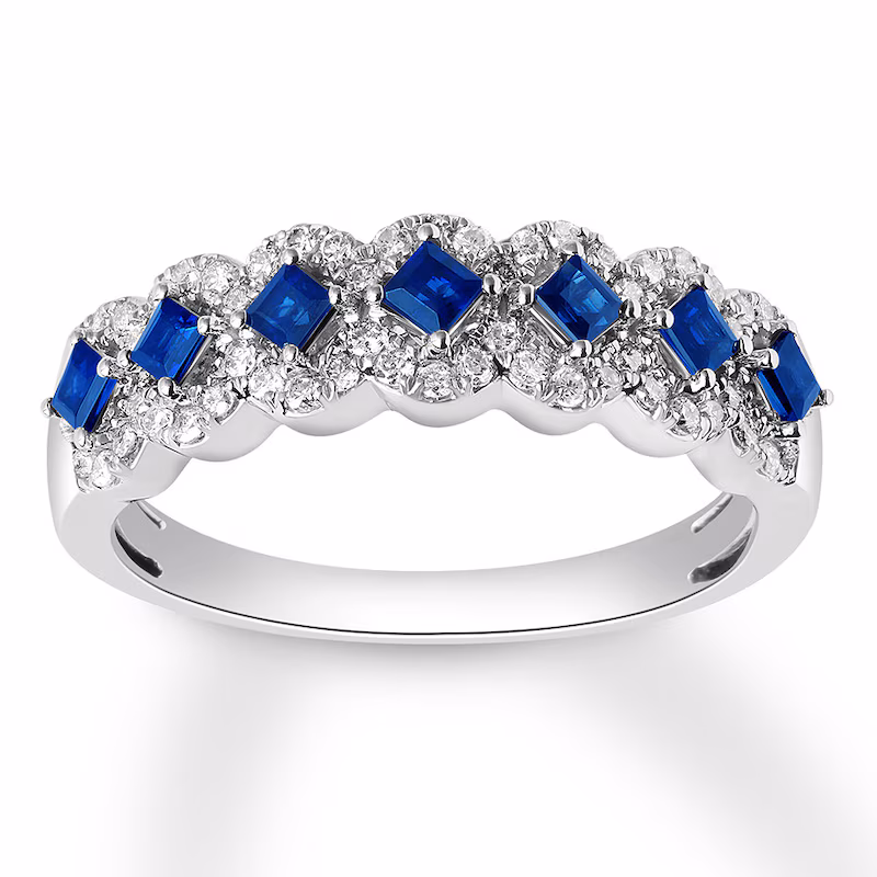 Sapphire Anniversary Band 1/4 ct tw Diamonds 10K White Gold