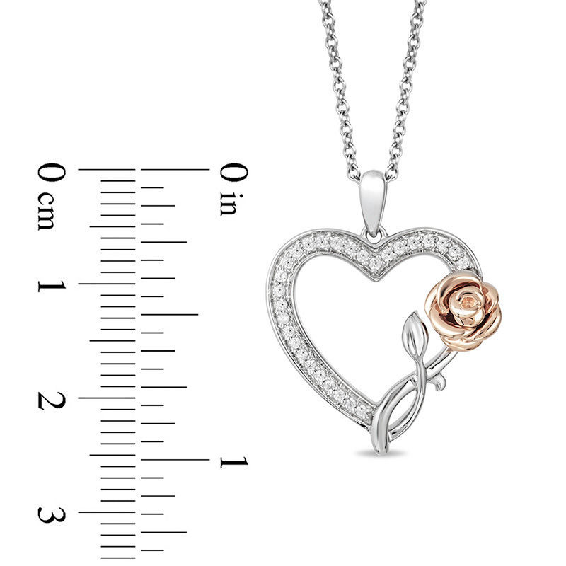 Enchanted Disney Belle 1/6 CT. T.W. Diamond Rose and Heart Pendant in Sterling Silver and 10K Rose Gold - 19"