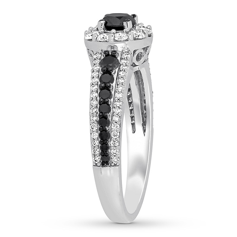 Black & White Diamond Engagement Ring 1 ct tw Round-cut White Gold Plated