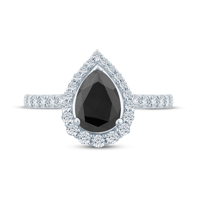Pear-Shaped Black Diamond & Round-Cut White Diamond Engagement Ring 1-1/2 ct tw White Gold Plated
