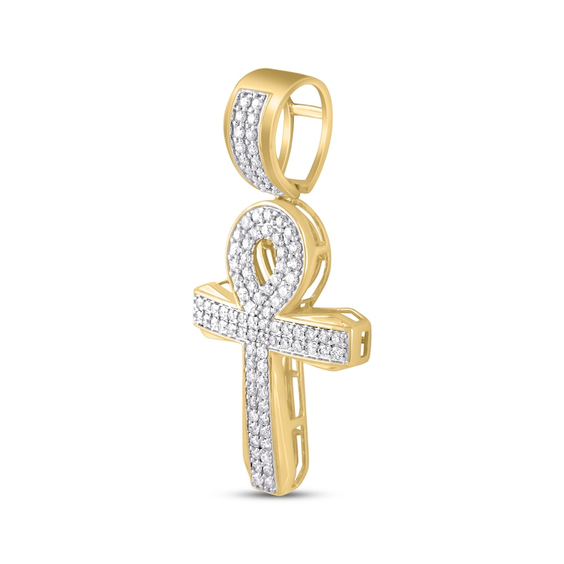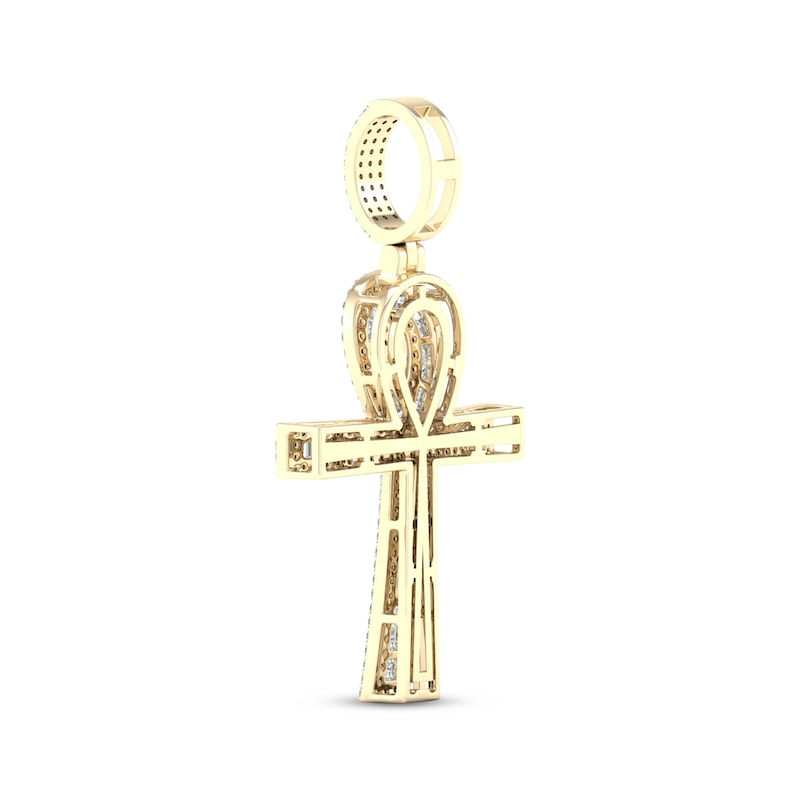 Men's Baguette & Round-Cut Diamond Ankh Charm 1 ct tw Yellow Gold Plated