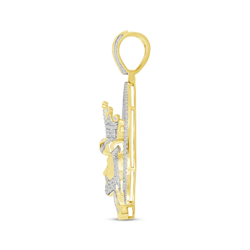 Men's Baguette & Round-Cut Diamond Jesus Medallion Charm 1-1/4 ct tw Yellow Gold Plated