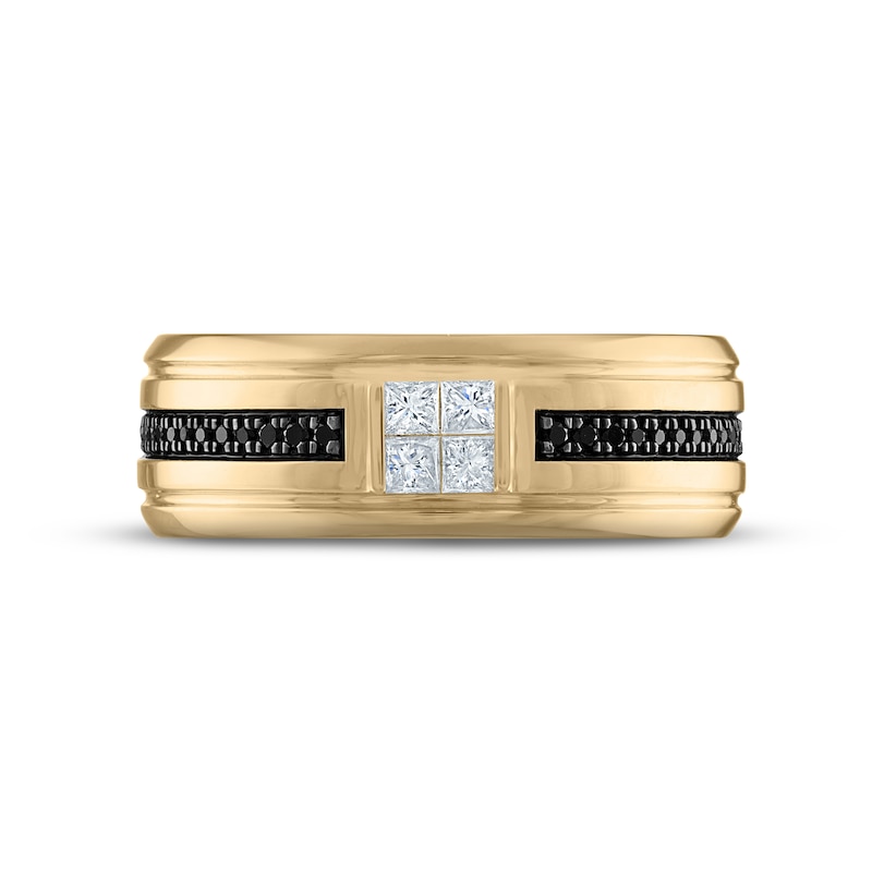 Men's White & Black Diamond Wedding Band 1/3 ct tw Square & Round-cut Yellow Gold Plated