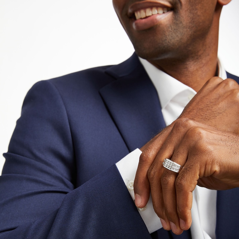 Men’s Round-Cut Diamond Wedding Band 2 ct tw White Gold Plated