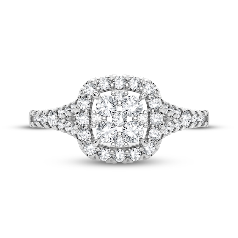 Multi-Diamond Center Cushion Split-Shank Engagement Ring 3/8 ct tw Round-cut White Gold Plated