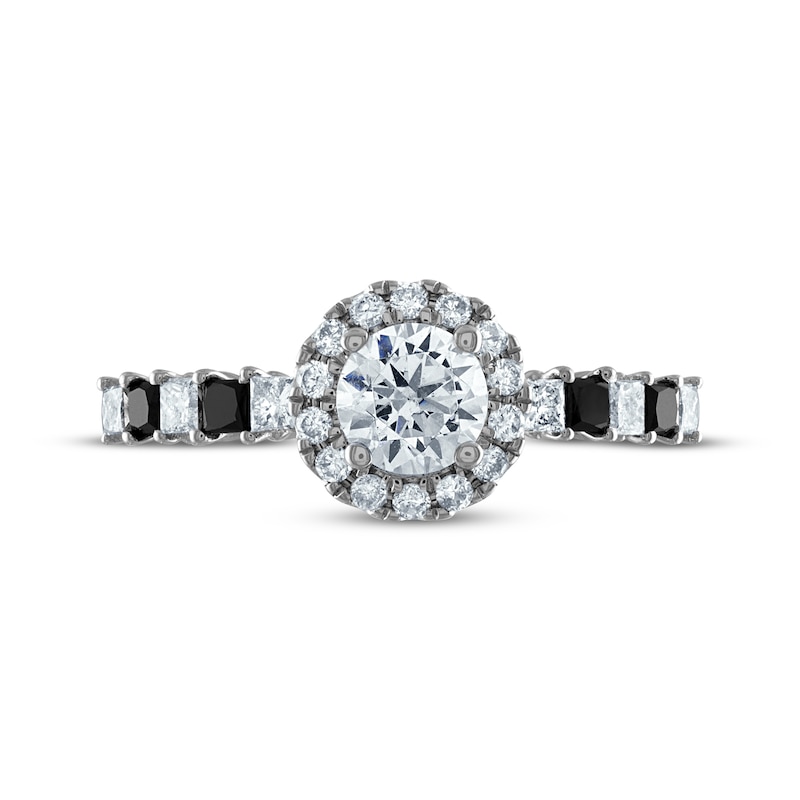 Princess-Cut Black Diamond & White Diamond Halo Engagement Ring 1 ct tw White Gold Plated