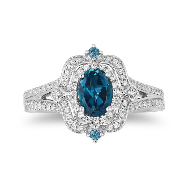 Collector's Edition Enchanted Disney Cinderella 70th Anniversary Blue Topaz and Diamond Ring in Sterling Silver