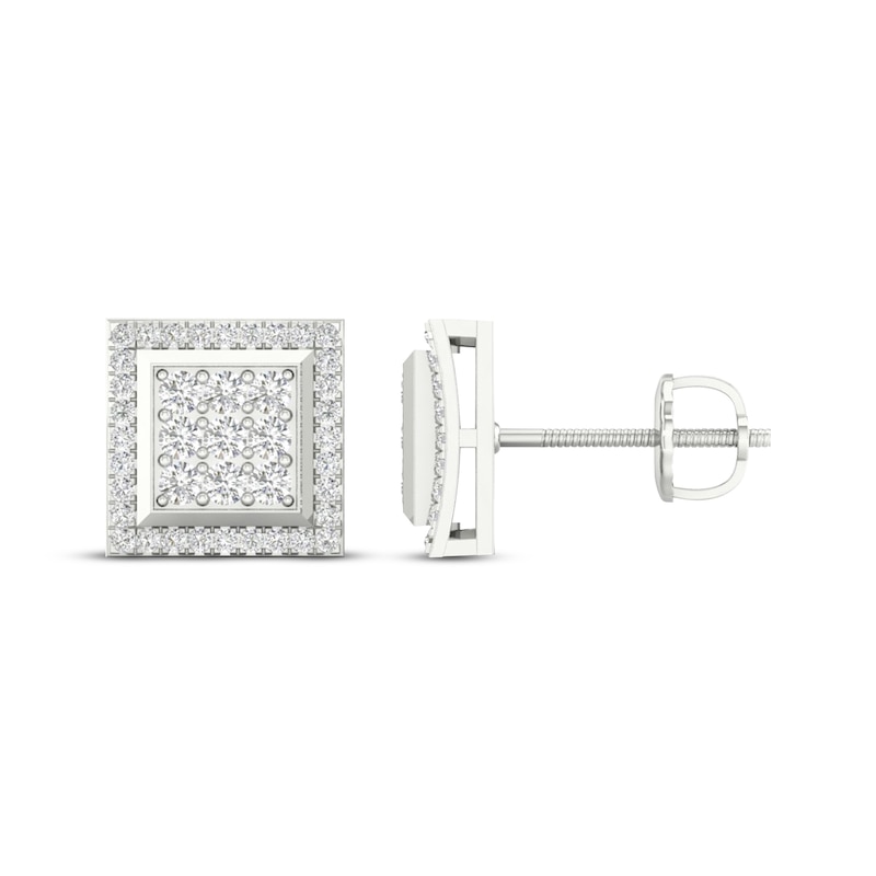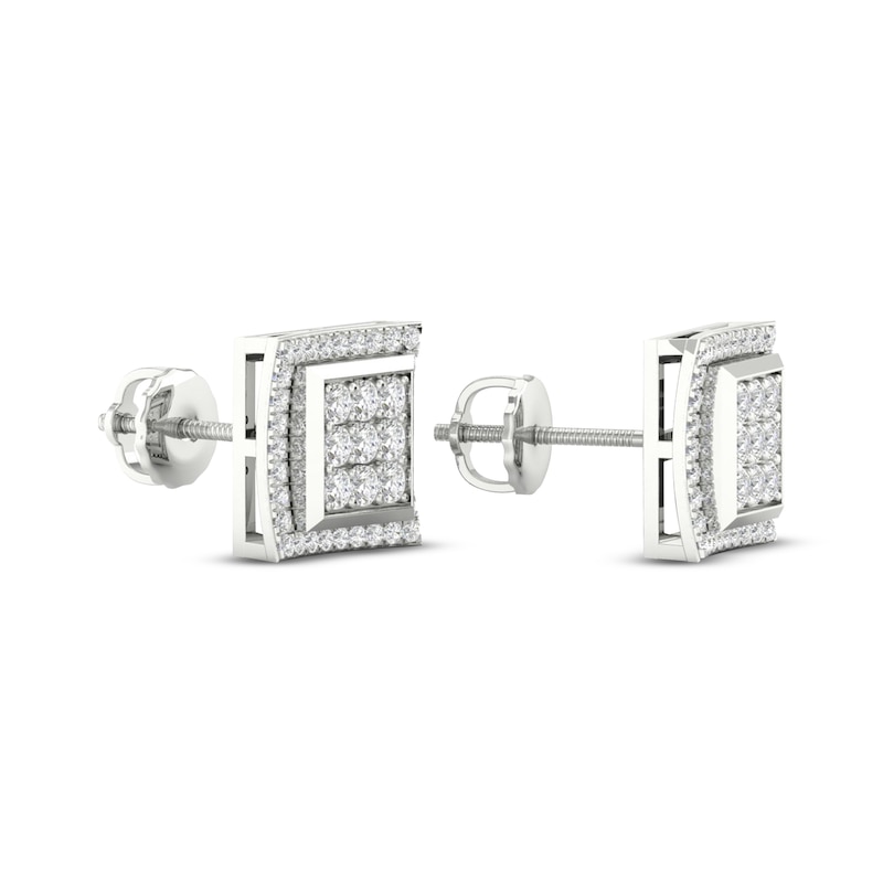 Men's Multi-Diamond Square Curved Stud Earrings 1/2 ct tw White Gold Plated