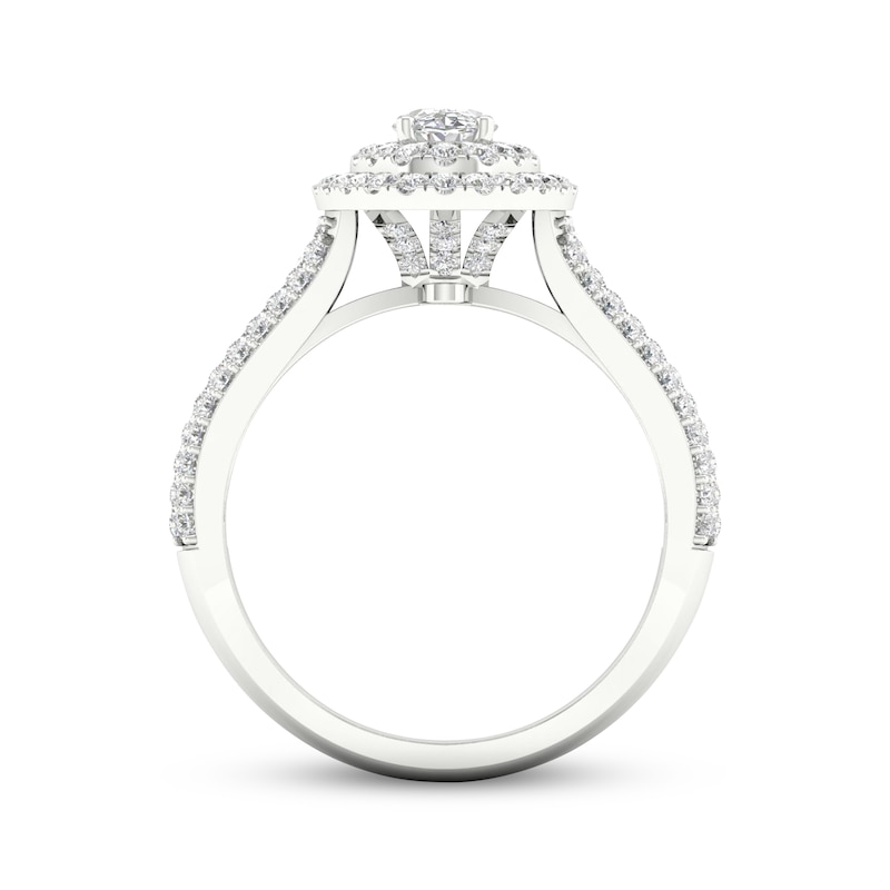 Multi-Diamond Center Teardrop Frame Engagement Ring 3/4 ct tw White Gold Plated