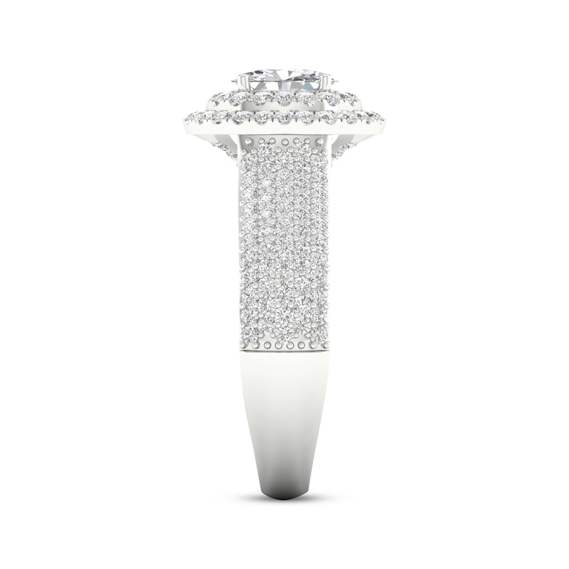 Multi-Diamond Center Cushion Frame Engagement Ring 1-1/2 ct tw White Gold Plated