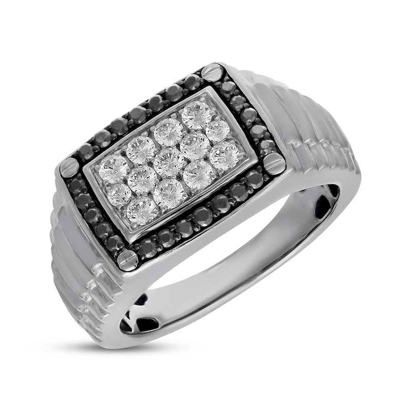 Men's Black & White Diamond Ring 1 ct tw White Gold Plated