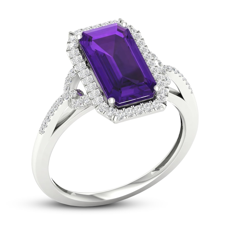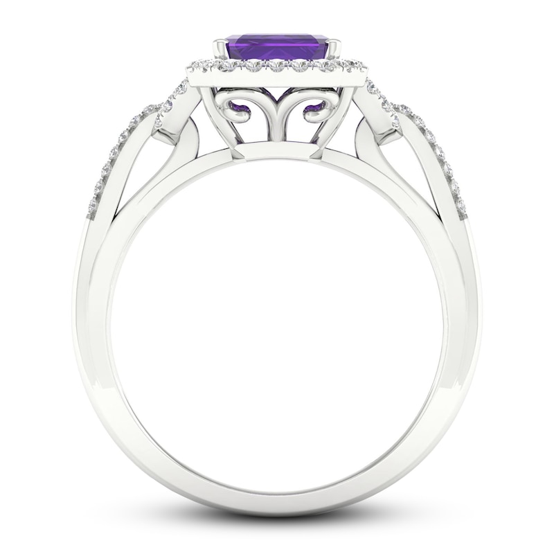 Amethyst & Diamond Ring 1/5 ct tw White Gold Plated