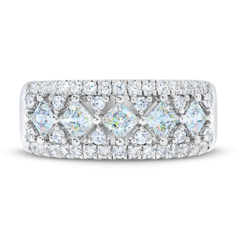 THE LEO First Light Diamond Princess & Round-Cut Anniversary Ring 1-1/2 ct tw White Gold Plated