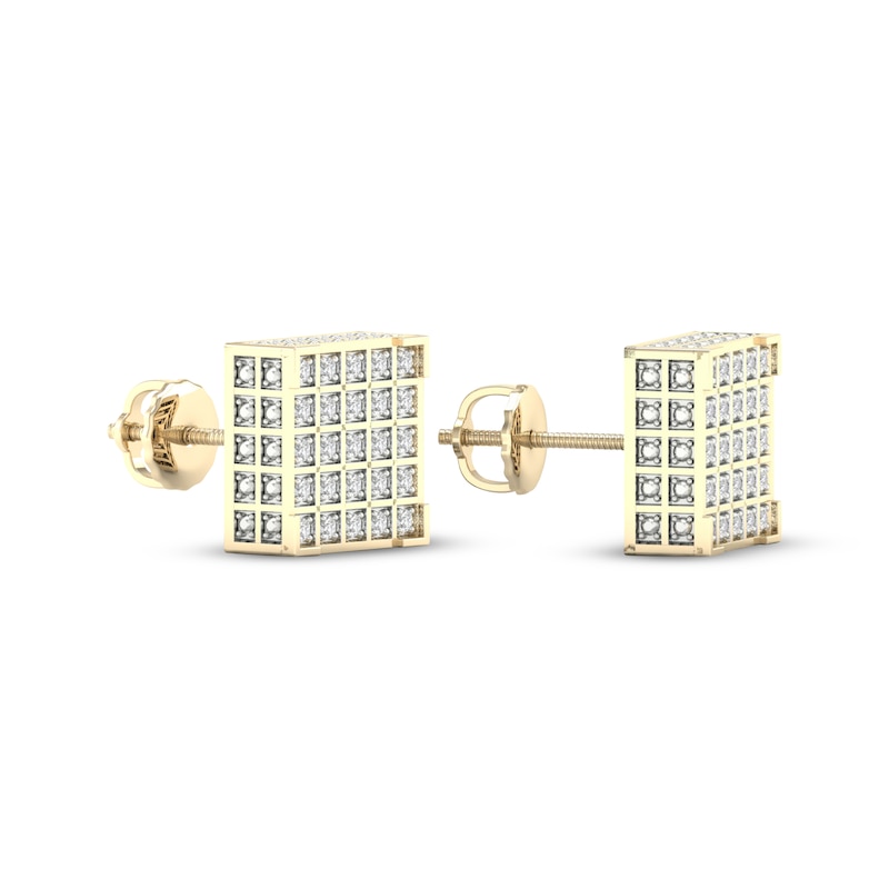 Men's Diamond Cube Earrings 1/4 ct tw Yellow Gold Plated