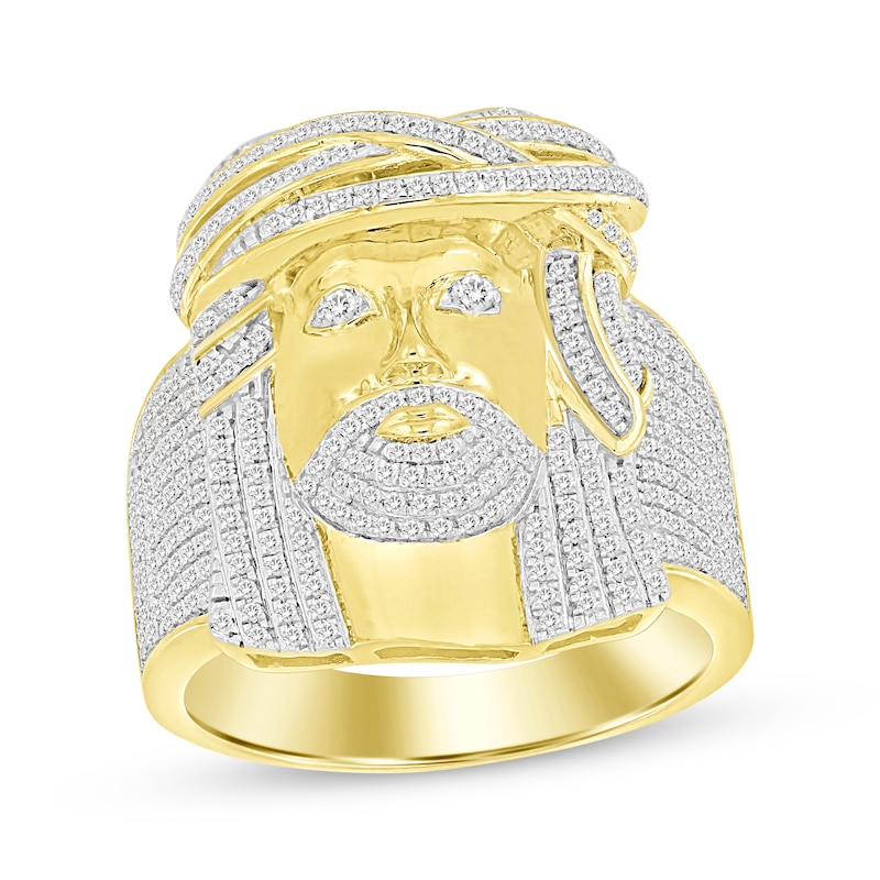 Men's Diamond Face of Christ Ring 3/4 ct tw Yellow Gold Plated