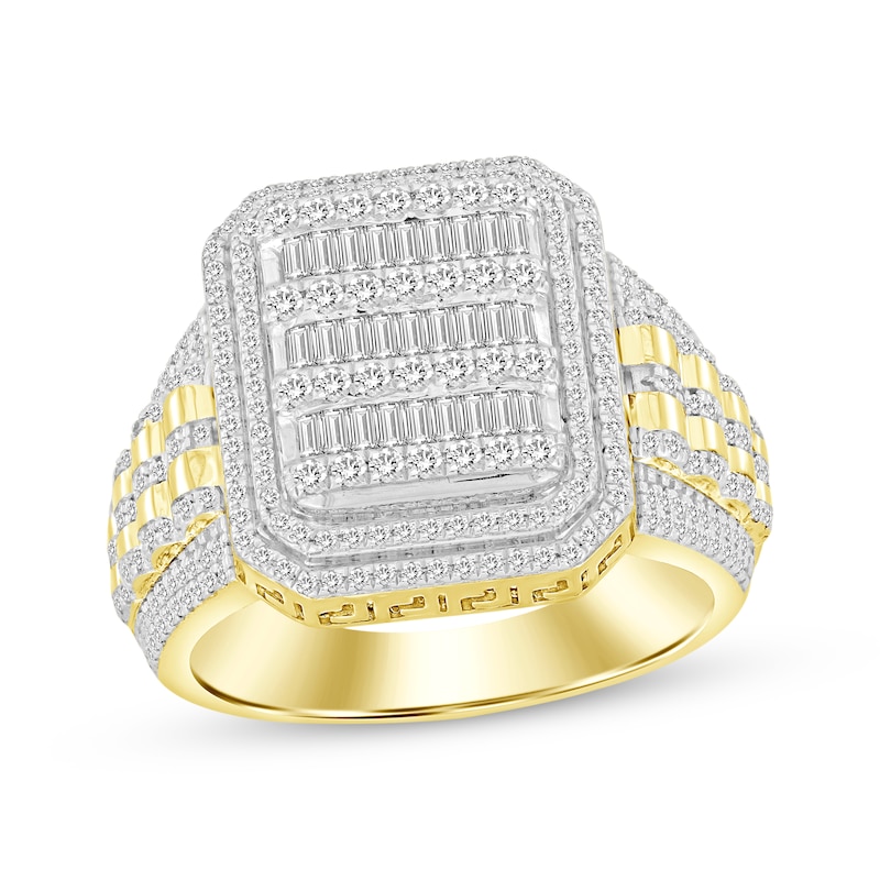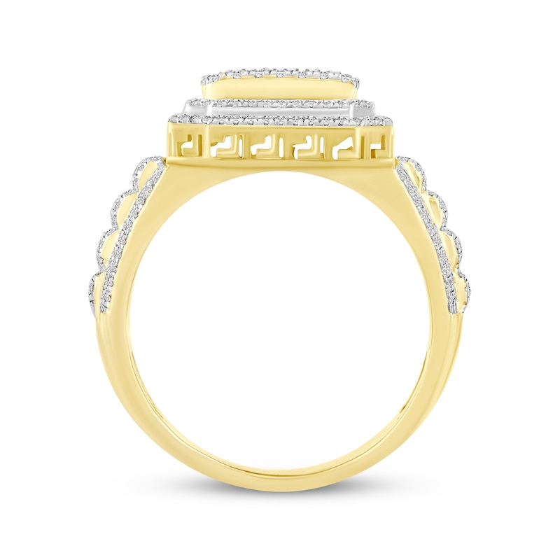 Men's Baguette & Round-Cut Multi-Diamond Center Greek Key Ring 1 ct tw Yellow Gold Plated