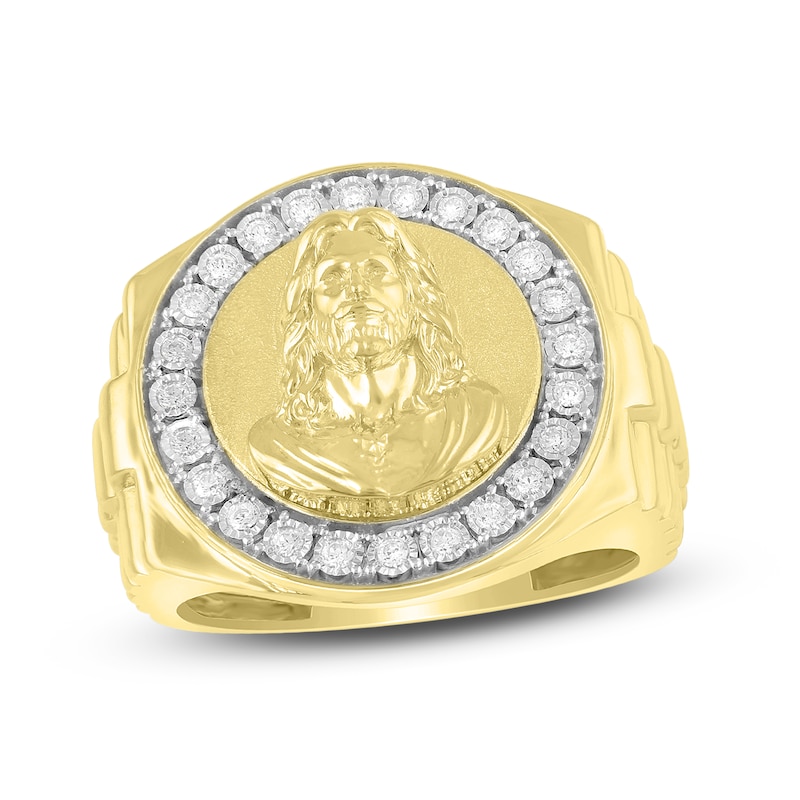 Men's Diamond Christ Ring 1/4 ct tw Round-cut Yellow Gold Plated - Size 10