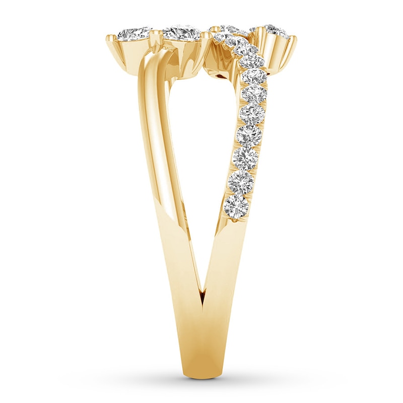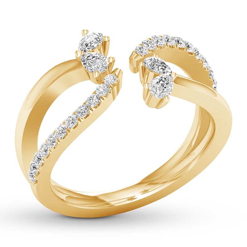 Diamond Deconstructed Ring 3/8 ct tw Round & Pear Yellow Gold Plated