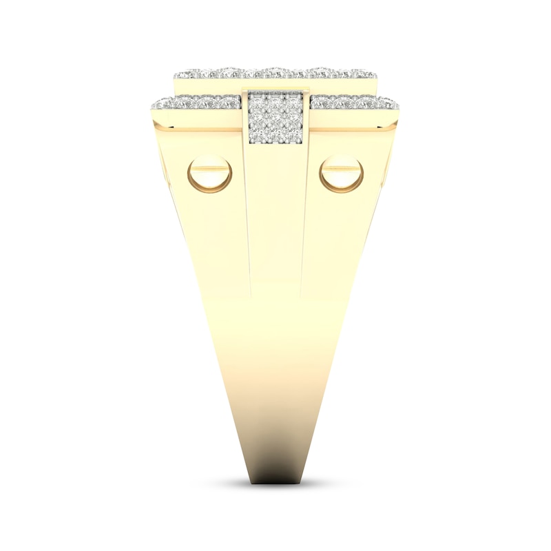 Men's Multi-Diamond Center Square Ring 1 ct tw Round & Baguette-cut Yellow Gold Plated