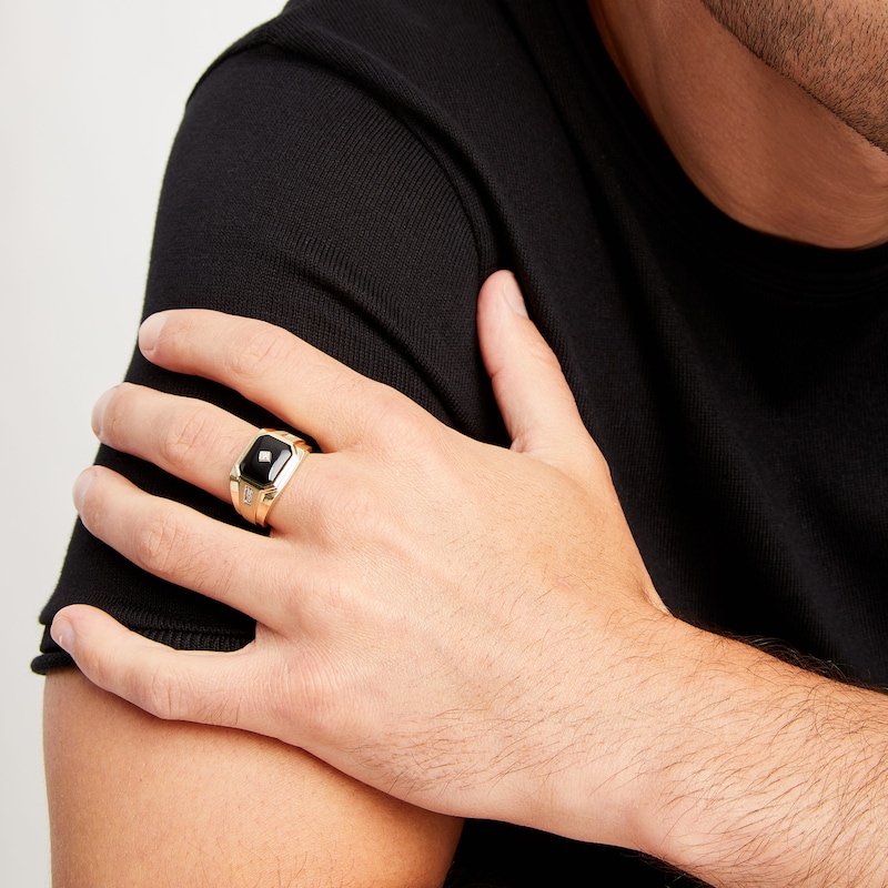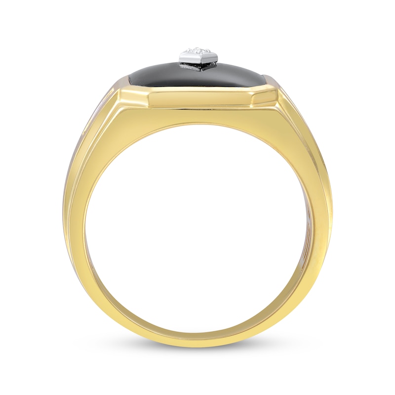 Men's Black Onyx & Diamond Ring Yellow Gold Plated