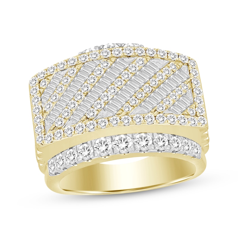 Men's Baguette & Round-Cut Diamond Diagonal Ring 3 ct tw Yellow Gold Plated
