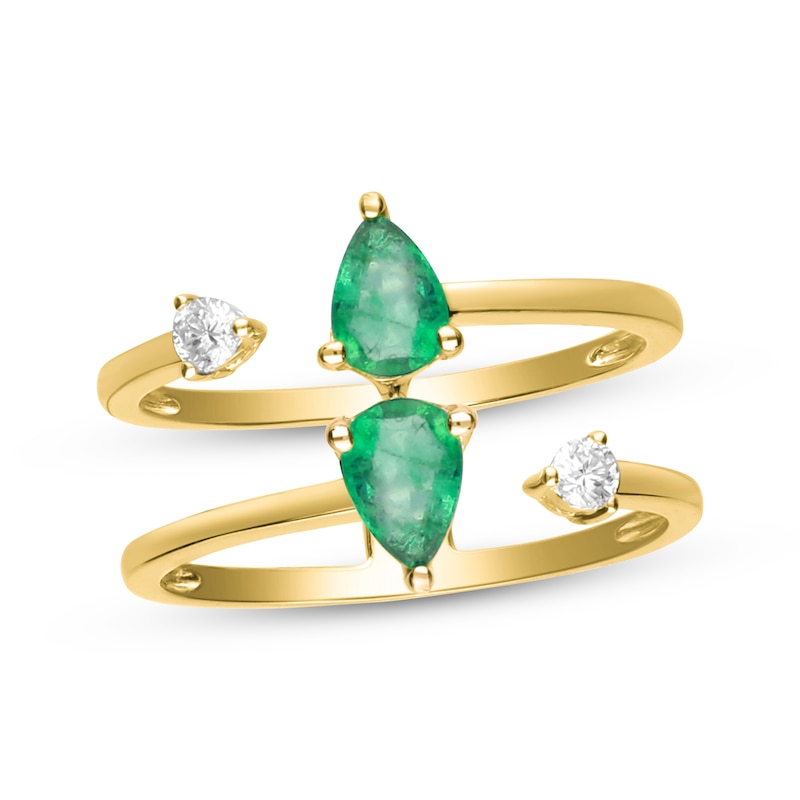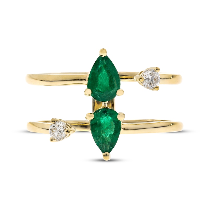 Pear-Shaped Emerald & Diamond Deconstructed Two-Row Ring 1/8 ct tw Yellow Gold Plated